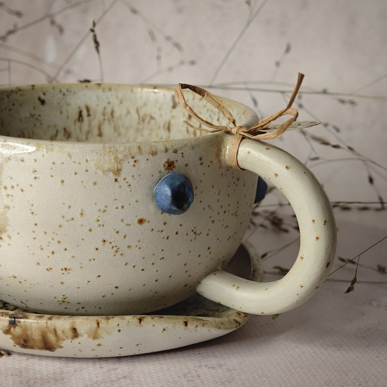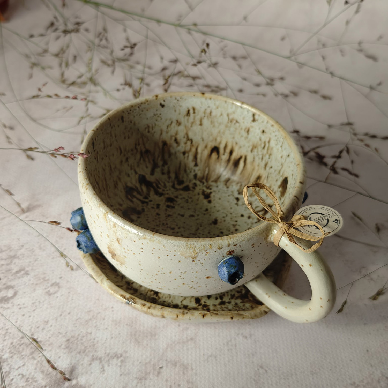 Ręcznie wykonana filiżanka, z motywem borówek to idealny pomysł na prezent dla Ciebie lub kogoś wyjątkowego.
