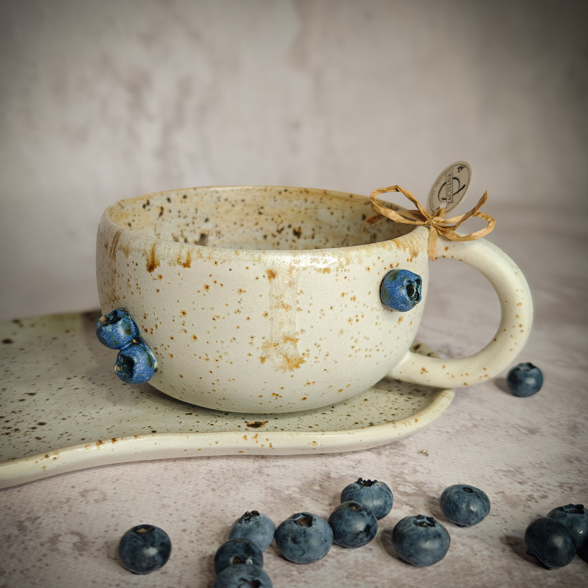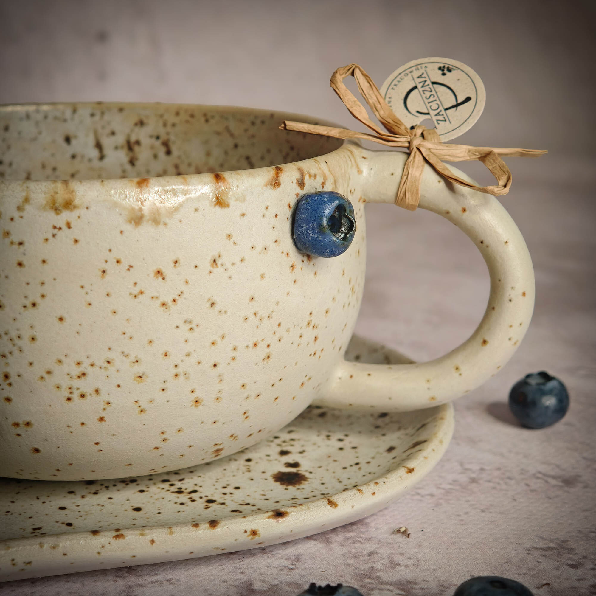 Ręcznie wykonana filiżanka, z motywem borówek to idealny pomysł na prezent dla Ciebie lub kogoś wyjątkowego.