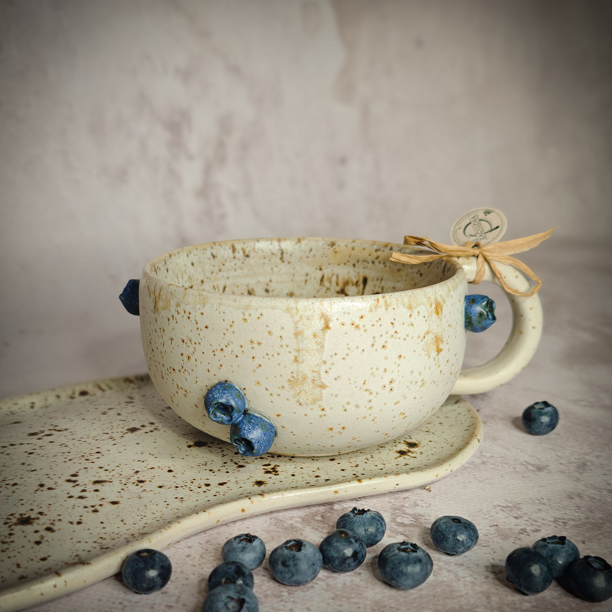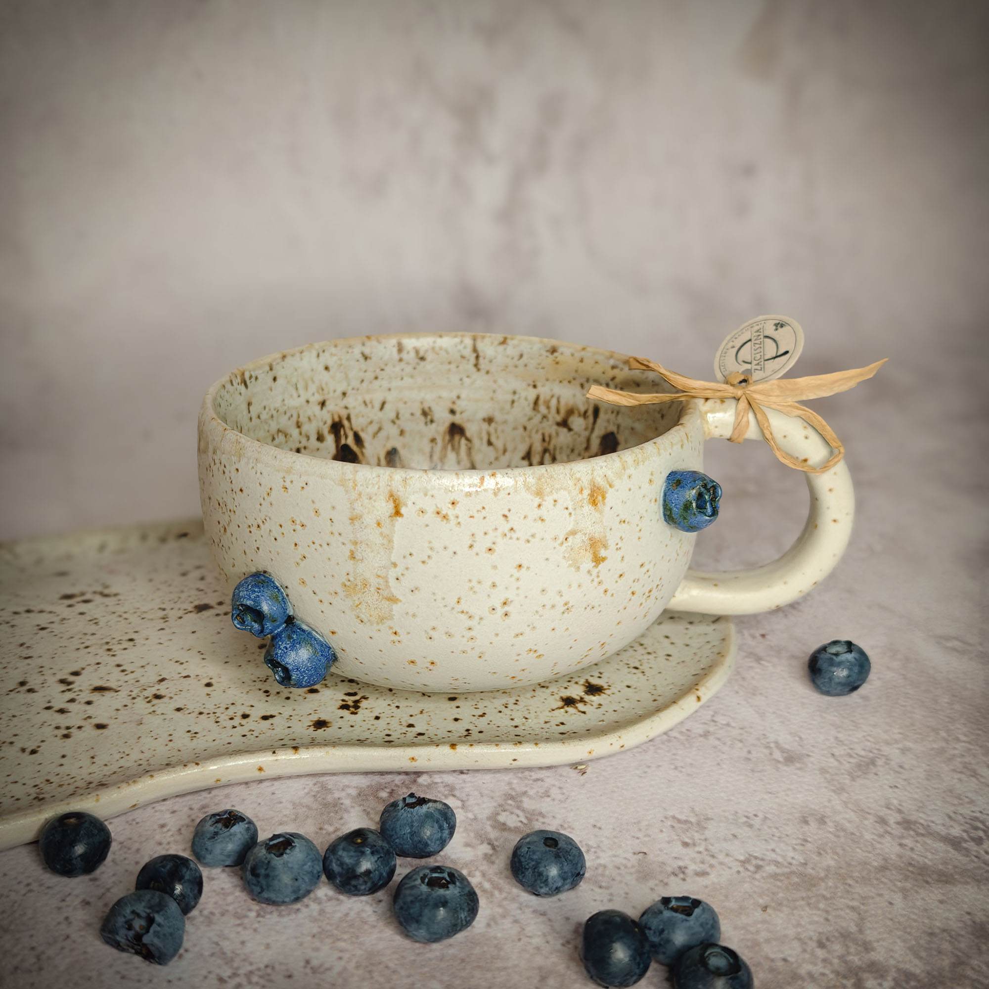 Ręcznie wykonana filiżanka, z motywem borówek to idealny pomysł na prezent dla Ciebie lub kogoś wyjątkowego.