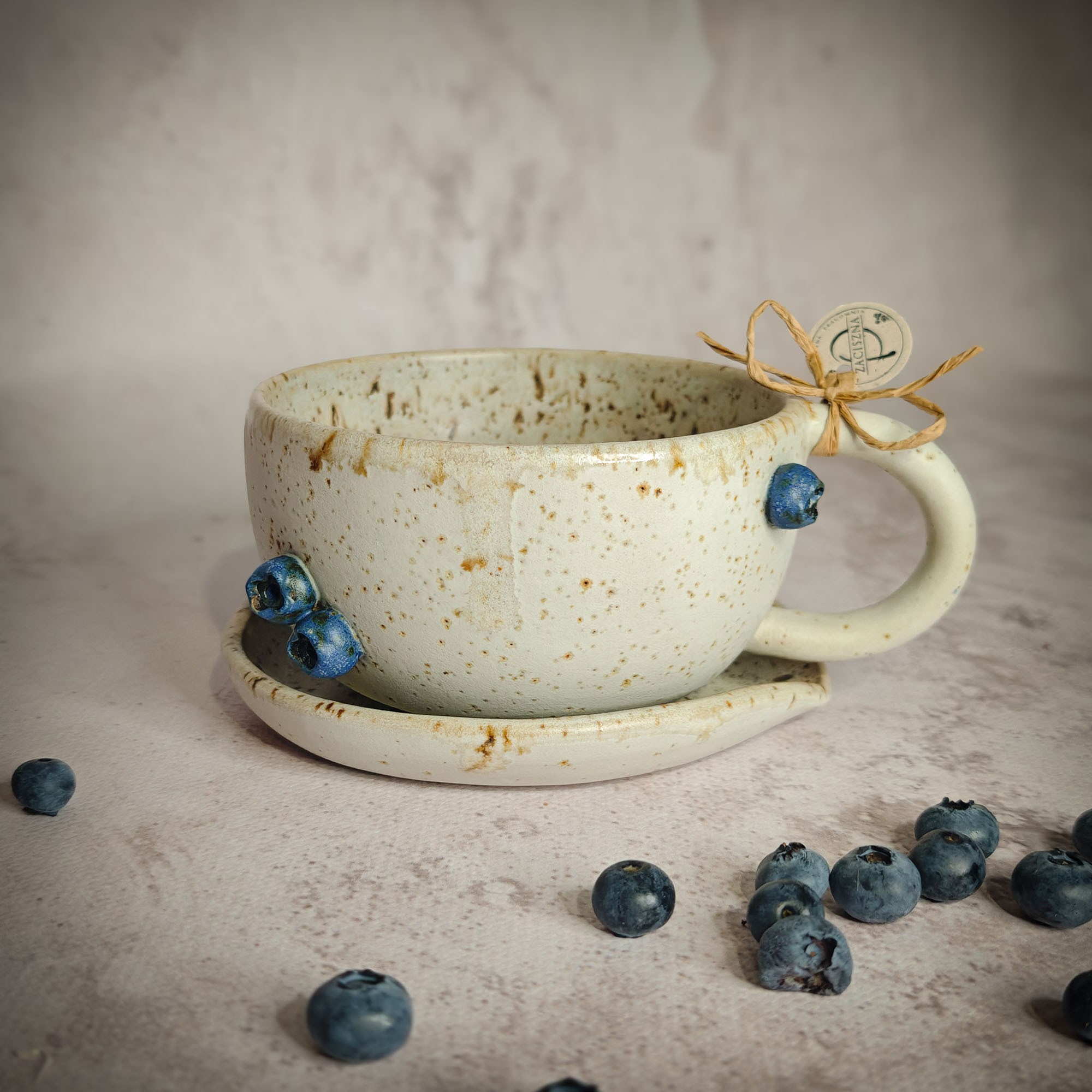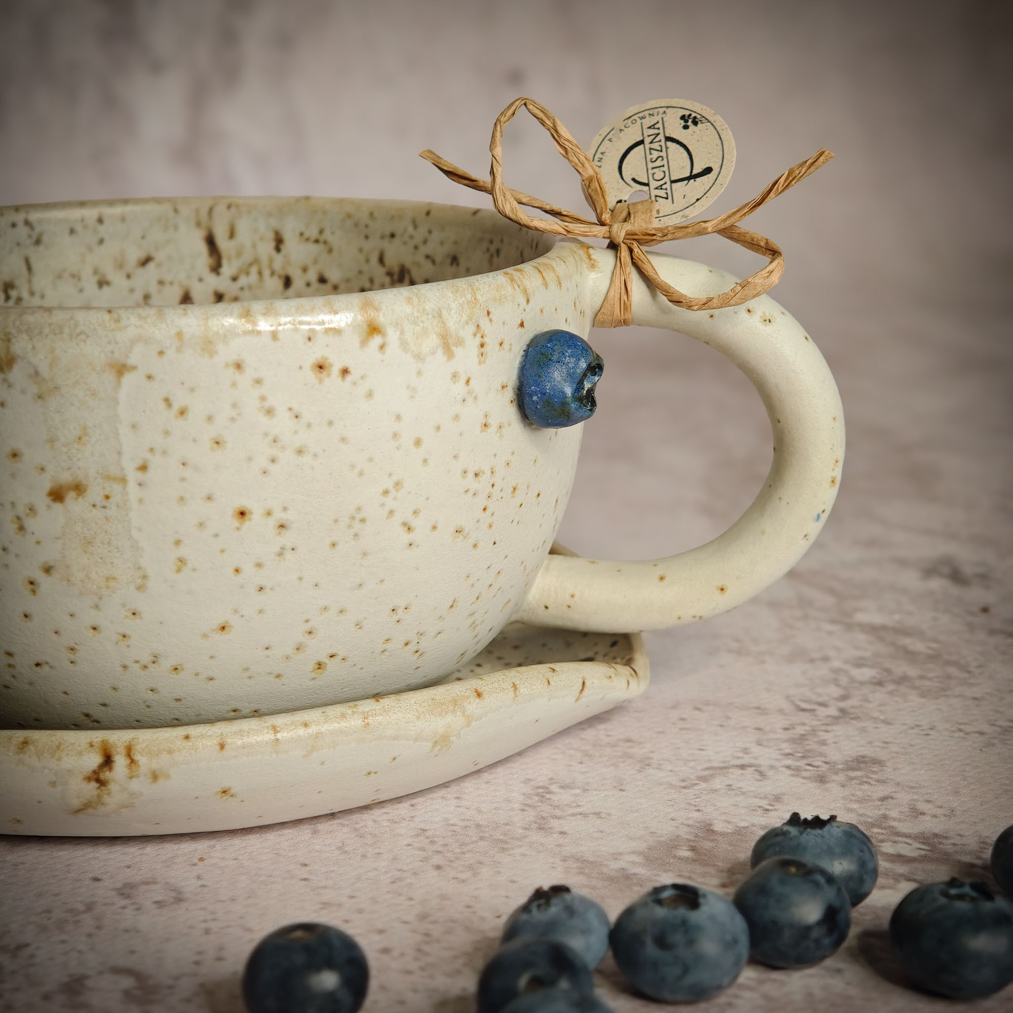 Ręcznie wykonana filiżanka, z motywem borówek to idealny pomysł na prezent dla Ciebie lub kogoś wyjątkowego.