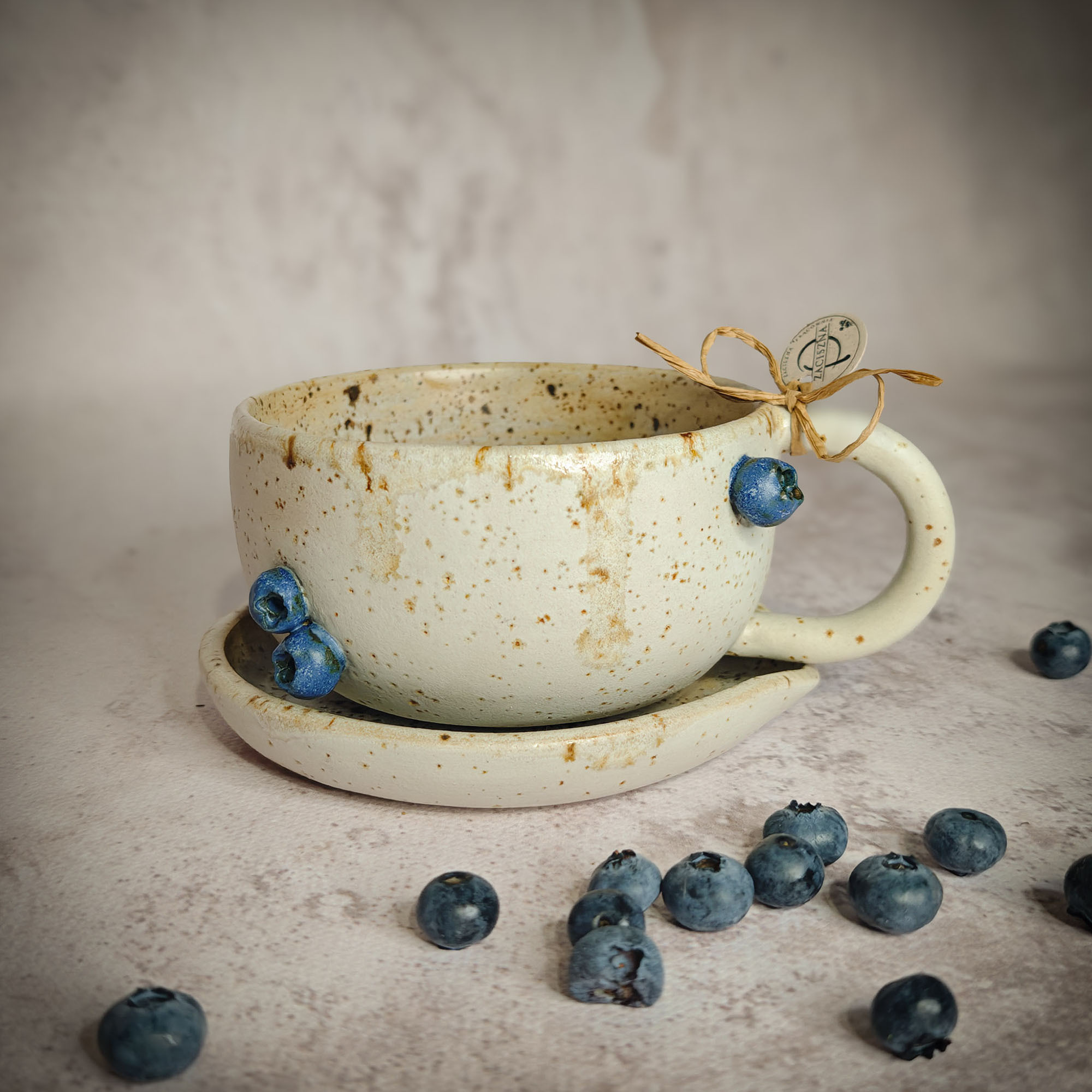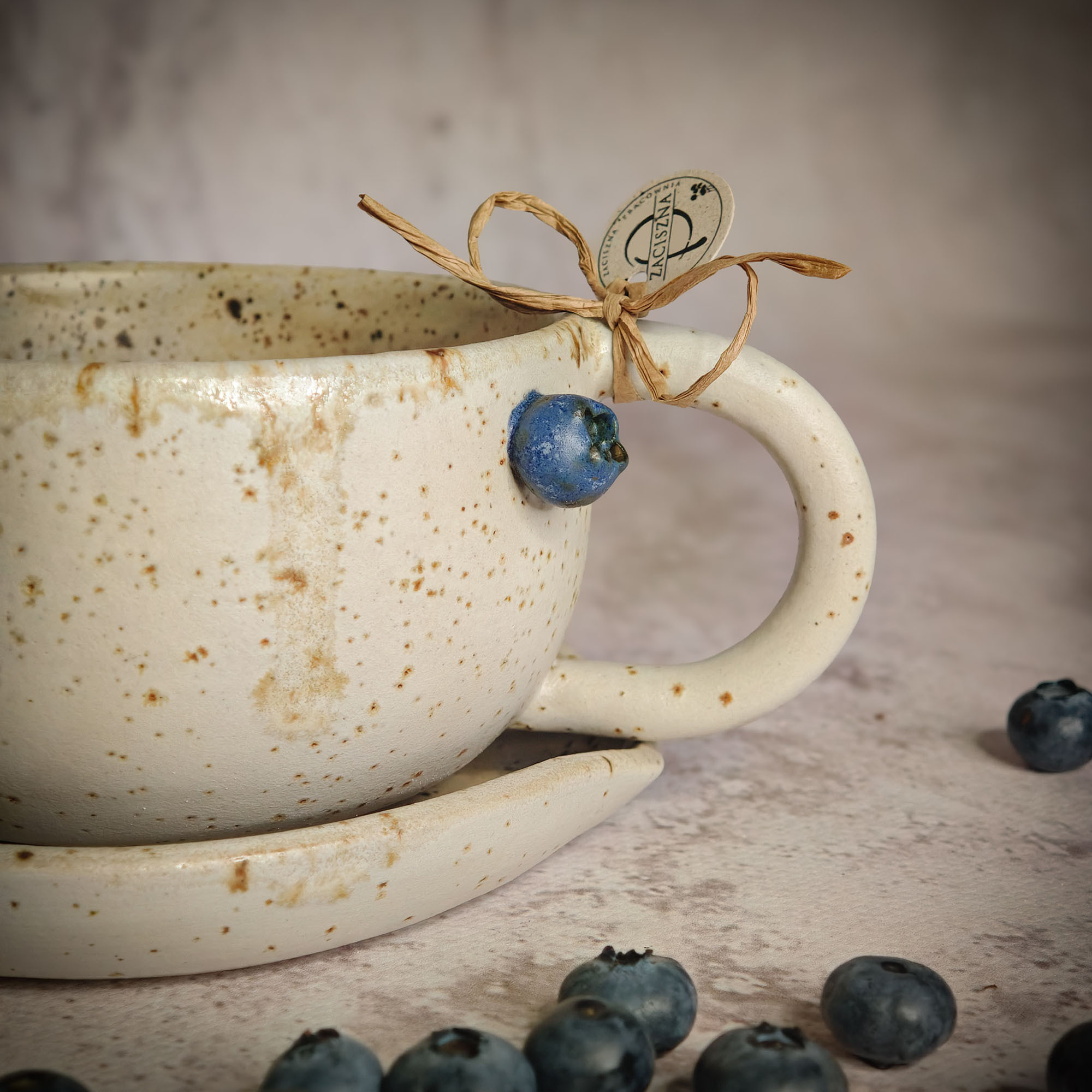 Ręcznie wykonana filiżanka, z motywem borówek to idealny pomysł na prezent dla Ciebie lub kogoś wyjątkowego.